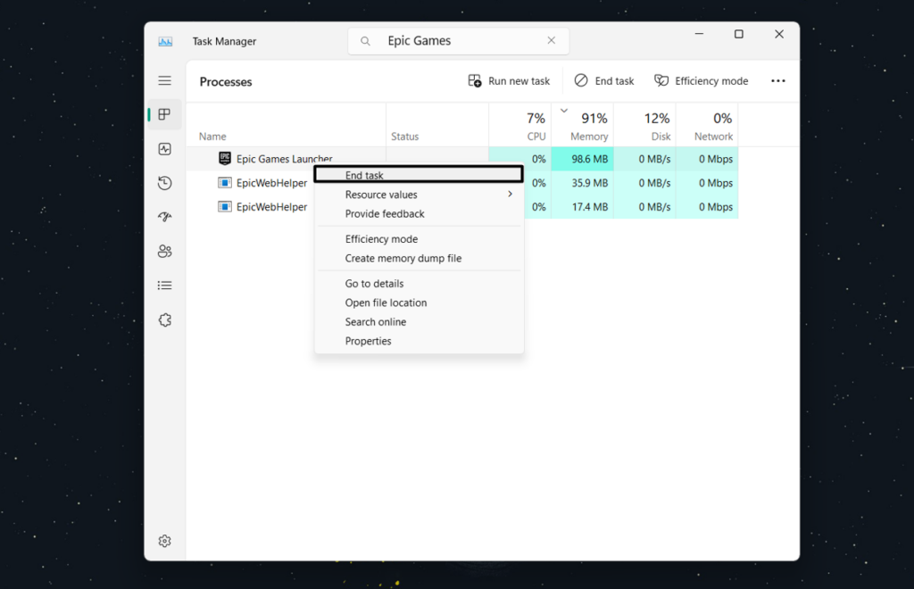 4. Force Close & End Epic Games Launcher