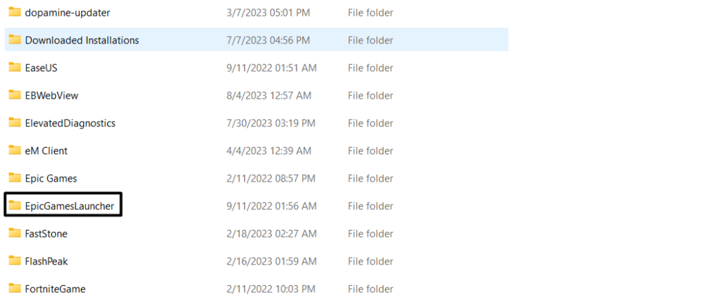2.Miután a fenti könyvtárba került, keresse meg aEpicGamesLaunchermappába, és nyissa meg.