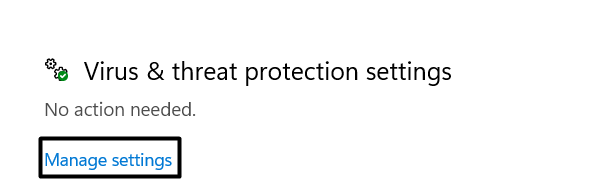3.Kattintson aBeállítások kezeléseszöveget, és kapcsolja ki a kapcsolót aMicrosoft Defenderszakasz.