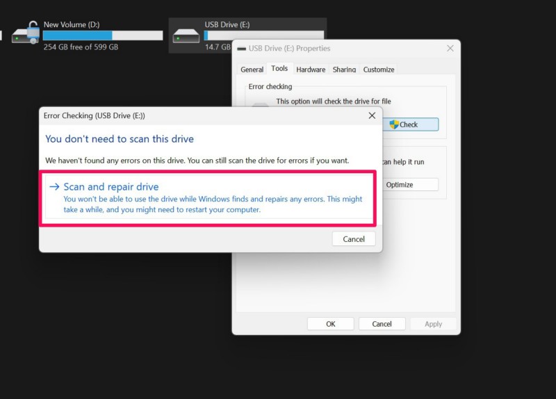 6.Végül kattintson aBeolvasás és javítás meghajtó gomba hiba-ellenőrzési folyamat kezdeményezéséhez.