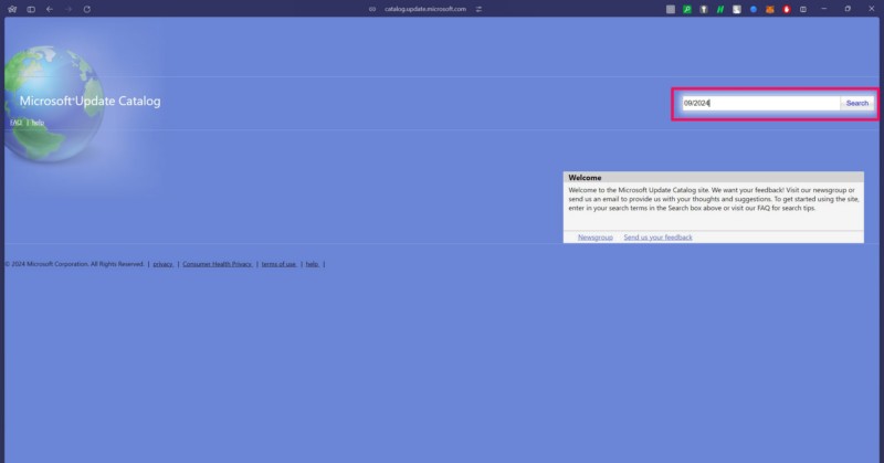 2.Nyissa meg a kívánt webes böngészőt, és keresse meg a Microsoft Update Catalog webhelyet. Te is lehetHasználja ezt a linketAz oldal közvetlen megnyitásához az alapértelmezett böngészővel.