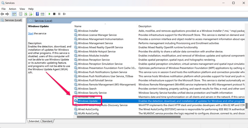 3.A következő szolgáltatások ablakban keresse meg aWindows frissítésSzolgáltatás a jobb oldali ablakon.