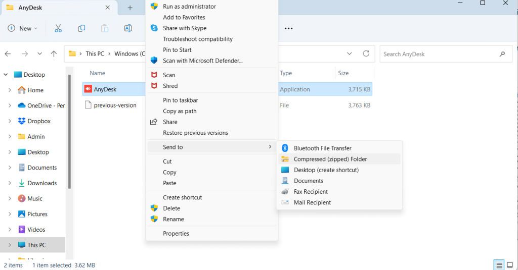 3. Kattintson a jobb gombbal a .exe fájlra, és válasszonKüldje el a> tömörített (cipzáras) mappába-