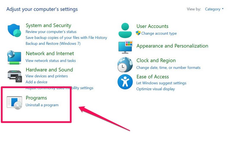 3.A fájl letöltése után nyissa megVezérlőpultés válassza ki aTávolítson el egy programotalatti opciótProgramokmenü.
