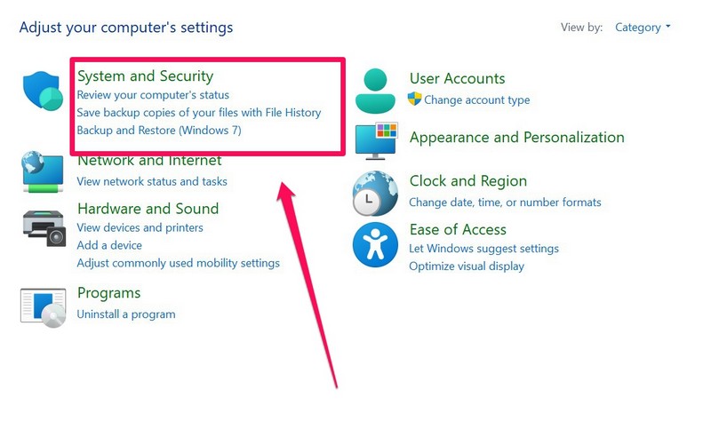 2.A Vezérlőpult megnyitása után lépjen aRendszer és biztonságmenü.