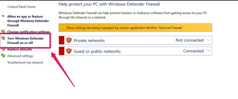 Jegyzet:Ha harmadik féltől származó víruskereső programot használ számítógépén vagy laptopján,nem fog tudni hozzáférni bizonyos Windows tűzfalbeállításokhoz. Ebben az esetben ki kell kapcsolnia a tűzfalat a harmadik féltől származó víruskereső programon keresztül.