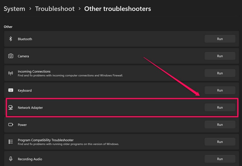5. Hálózati adapter hibaelhárítása Windows 11 rendszerben