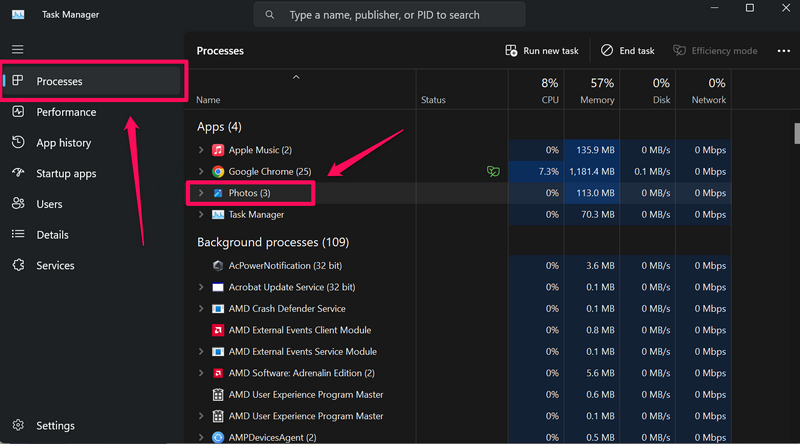 1.A készüléken megnyílt Photos alkalmazás alkalmazásával nyomja meg a Ctrl + Shift + ESC gombotNyissa meg a feladatkezelőt-