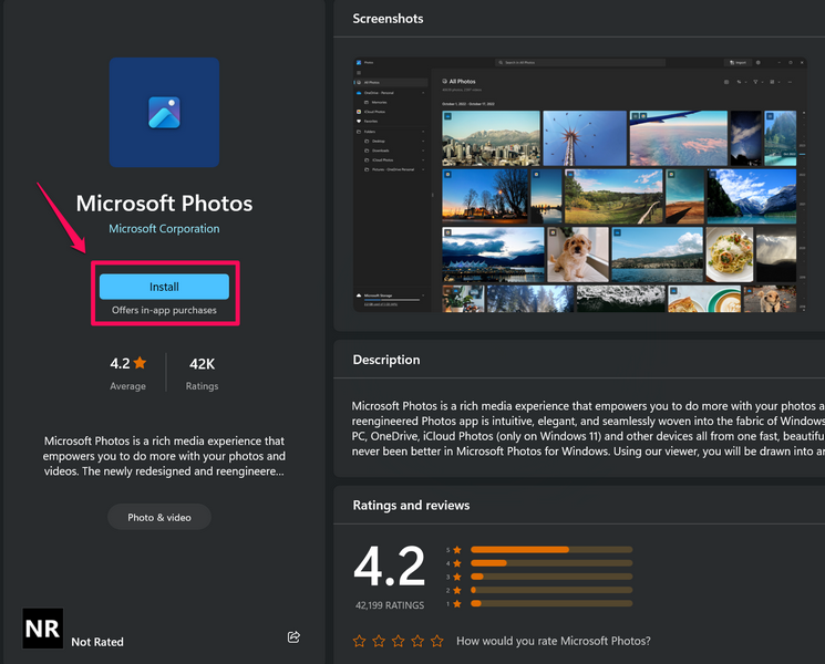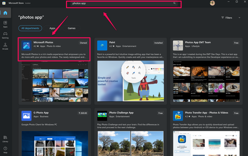 8.Miután a Phots alkalmazás frissítése elérhető volt, kattintson aGet gombMellett, hogy telepítse a készülékre.
