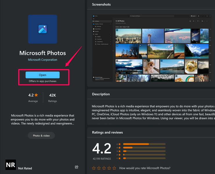 8.A telepítés befejezése után kattintson aNyitott gombA fotók alkalmazás elindításához az eszközön.