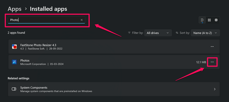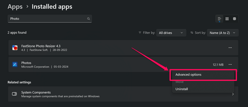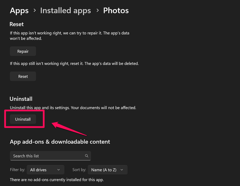 Egy másik dolog, hogy megpróbálja megoldani a Generative törlést, amely nem működik a Photos alkalmazásban, az, hogy eltávolítsa az alkalmazást a Windows 11 PC -ből vagy a laptopból, és telepítse újra. Ez törli az összes alkalmazás adatait az eszközről, és frissen telepíti a Photos alkalmazást.