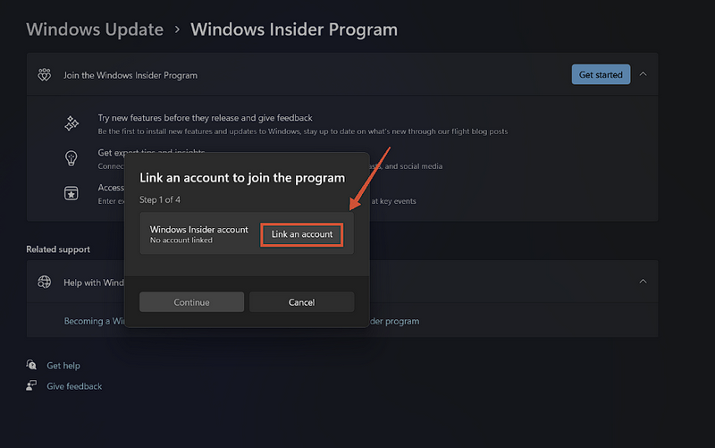 3.Ha nem vagy Windows bennfentes, akkor megtehetiKövesse a képernyőn megjelenő utasításokatA Windows 11 PC -jének vagy a Windows Preview Builds laptopjának beiratkozásához.