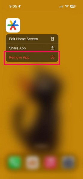 2. Érintse meg és tartsa lenyomva az alkalmazás ikonjáta helyi menü megjelenítéséhez, és koppintson a gombraAlkalmazás eltávolítása gomb.