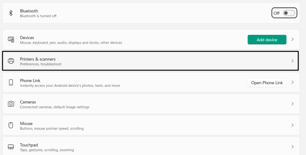 5.Miután újraindította őket, ismét menjenBluetooth & eszközökés válasszonNyomtatók és szkennerek-