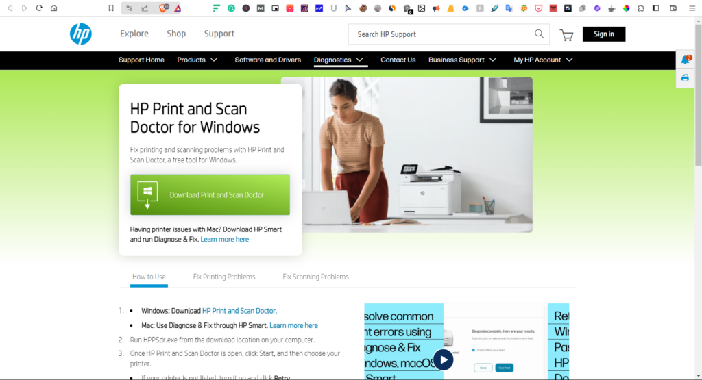 Az online fórumokon több felhasználó javasolta az érintett felhasználókatFuttassa a HP Print és a Scan Doctor eszköztA PC -n, mivel diagnosztizálja és javítja a nyomtatót és a szkenner problémáit. Azt is javasoljuk, hogy tegye ugyanezt, és ellenőrizze, hogy ez megoldja -e ezt a problémát az eszközén. Tehát kövesse az alábbiakban említett lépéseket, hogy megtudja, hogyan kell végrehajtani a HP Print és a Scan Doctor eszközt a számítógépen: