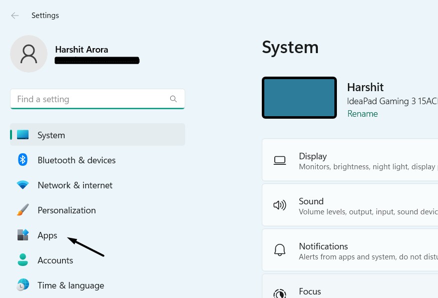 1.A Windows Store alkalmazás eszközének végrehajtásához a Windows 11 PC -n nyissa meg aBeállítások alkalmazás-