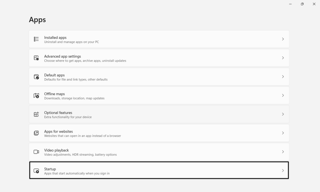 1.Folytassa aAlkalmazásokaBeállítási programÉs akkor válassza ki aIndulásopció.