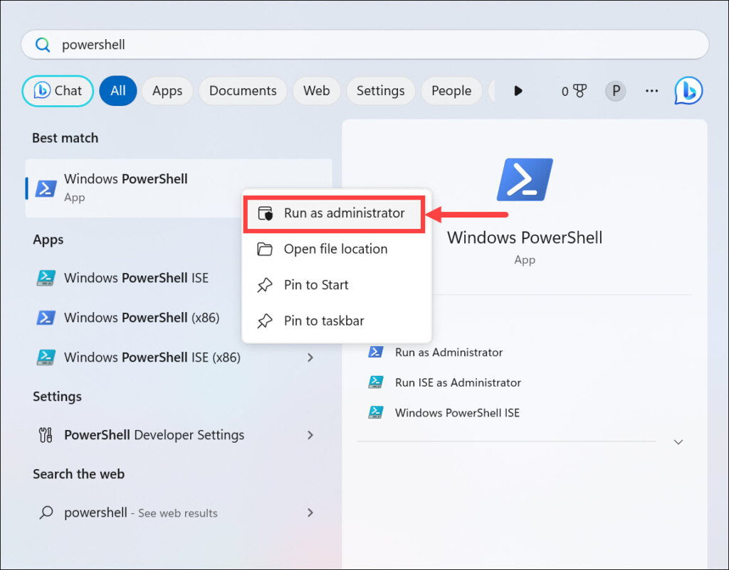 1.Nyissa meg a keresőmezőt, írja beWindows PowerShellEbben, majd válassza ki az eredmények közül.