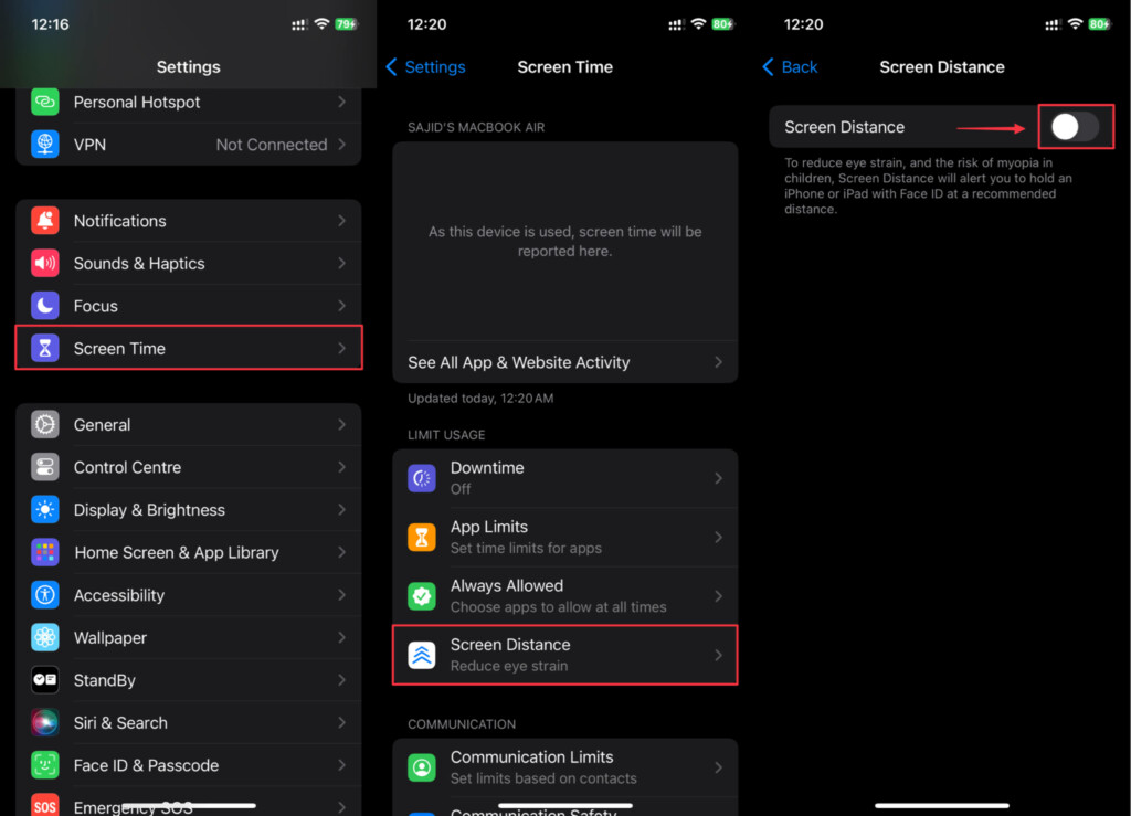 Tekintettel arra, hogy ez valószínűleg egy új szolgáltatás az iOS 17 -ben, időbe telik, amíg az Apple elkészíti, és addig kikapcsolhatja ezt a funkciót. Az iPhone képernyő távolságának kikapcsolásához kövesse ezeket a lépéseket az alábbiakban: