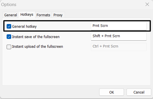 4. Ellenőrizze az általános gyorsbillentyűtA LightShot alkalmazásban
