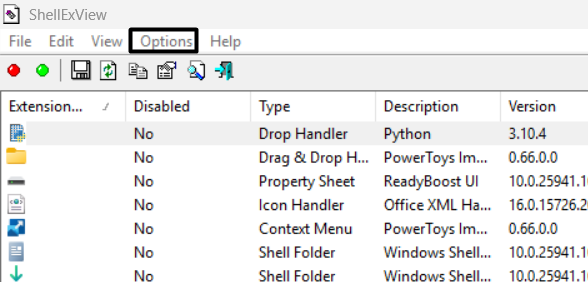 2.A felbukkanó menüből válassza kiOpciók…, és az új ablakban menj aGyorsbillentyűekfül.