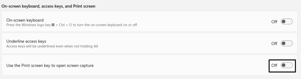Ha megnyomja a PRTSCN -t, hogy megnyissa a Lightshot Widget -t a számítógépen, de a kattintási eszköz megnyílik, akkor javasoljukTiltsa le a nyomtatási képernyő használatát a képernyő -rögzítési lehetőség megnyitásáhozhogy megjavítsa. Az alábbiakban említett lépéseket követheti, hogy ezt kikapcsolja a számítógépen: