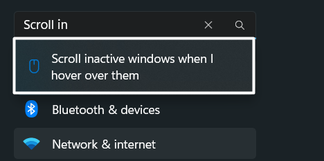 Engedélyezheti aGörgessen le Inaktív Windowsfunkció aEgérszakasza aBeállítások elemrekb. Kövesse az alábbi lépéseket, hogy megtudja, hogyan engedélyezheti ezt a lehetőséget a Windows 11/10 rendszeren: