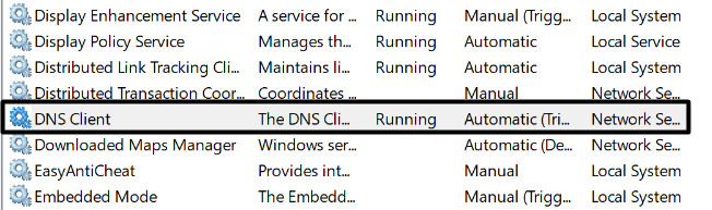 2.ASzolgáltatásokablakban keresse meg aDNS-kliensszolgáltatást, majd kattintson rá jobb gombbal a menü megjelenítéséhez.