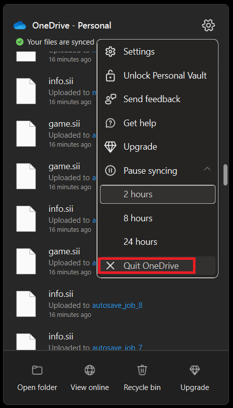 A szinkronizálás és a szinkronizálás folytatása egy viszonylag egyszerű hibaelhárítási lépés, amely megoldhatja a OneDrive szinkronizálási problémákat. Ami történik, amikor szünetet tart a szinkronizálással, az OneDrive leállítja az összes szinkronizálási folyamatot, és amikor folytatja a szinkronizálást, az összes szinkronizálással kapcsolatos folyamat újraindul, potenciálisan rögzítve az összes hibát és hibát a OneDrive alkalmazással, amely okozhatja, hogy a szinkronizálás nem működik a Windows 11-ben.