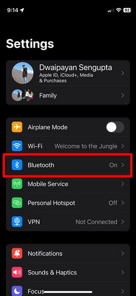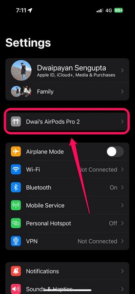 2.Meg fogod tennikeresse meg AirPodjaita Beállítások oldal tetején.Koppintson rá a megnyitáshoz.