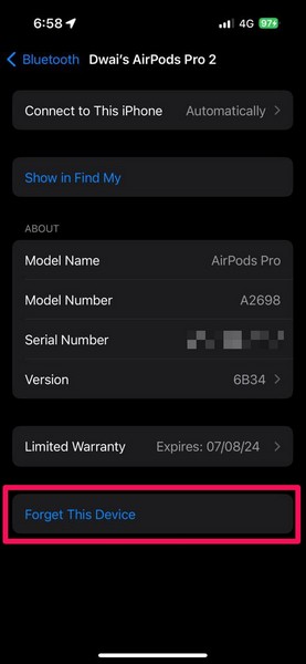4.A következő oldalon érintse meg aFelejtse el ezt a készüléketgomb.