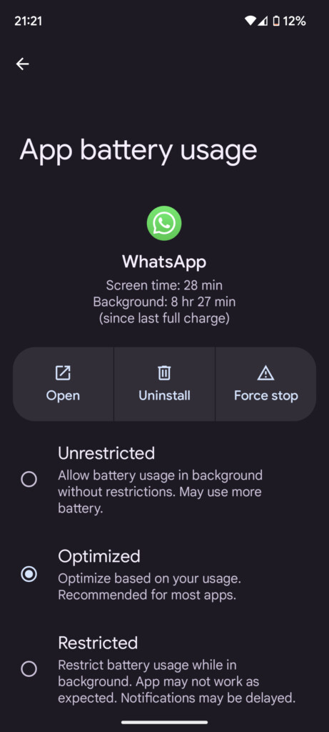 5.Módosítsa a háttér akkumulátorhasználatát korlátozottra.