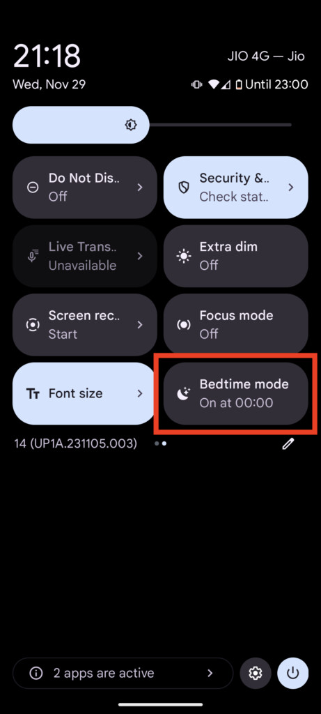 Ha nem látja a Lefekvés módot a Gyorskapcsolókban, kattintson a ceruzagombra, és adja hozzá az Alvásidő mód csempét a Gyorsváltó panelhez. Ezenkívül automatizálhatja az Alvásidő módot a Beállítások > Digitális jóllét > Lefekvés mód menüpontban.