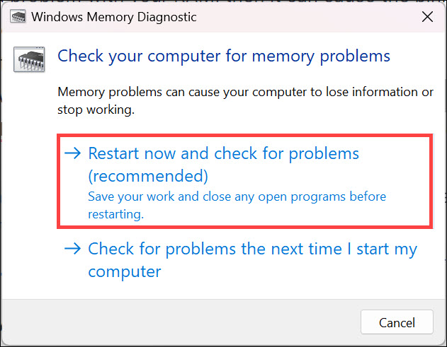11. Futtassa a Windows memória diagnosztikai eszközét