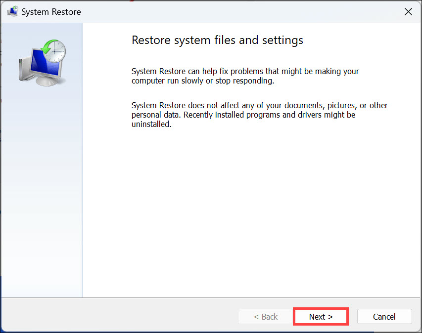 Ha még mindig szembesül a problémával, próbálja meg visszaállítani eszközét egy korábbi dátumra, amikor minden jól működött. A Windows 11 egy beépített rendszer-visszaállítási segédprogrammal érkezik, amely lehetővé teszi a felhasználók számára, hogy a rendszert egy korábbi dátumra állítsák vissza.