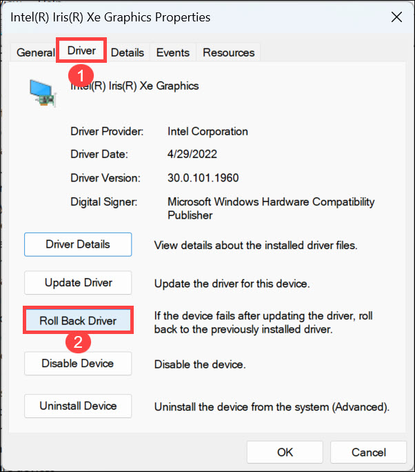 Ha nemrégiben frissítette a rendszer grafikus illesztőprogramját, akkor ez lehet a tettes. Tehát próbálja meg visszaszorítani az illesztőprogramot egy előző verzióra, és nézd meg, hogy ez megoldja -e a problémát. Ehhez kövesse ezeket a lépéseket:
