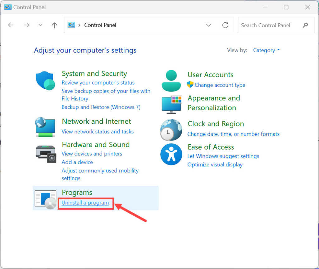 Ha nemrégiben telepített bármilyen alkalmazást a rendszerére, akkor ezek lehetnek a halál rózsaszín képernyőjének oka. Tehát próbálja meg eltávolítani őket, és nézze meg, hogy ez megoldja -e a kérdést. Így lehet ezt megtenni a Vezérlőpult használatával: