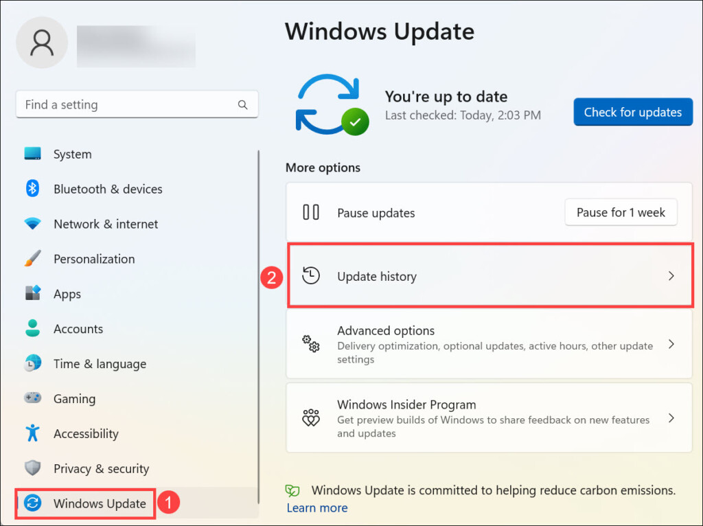 2.Váltás aWindows frissítésa bal oldalon és válassza a fületFrissítse az előzményeketjobb oldalon.