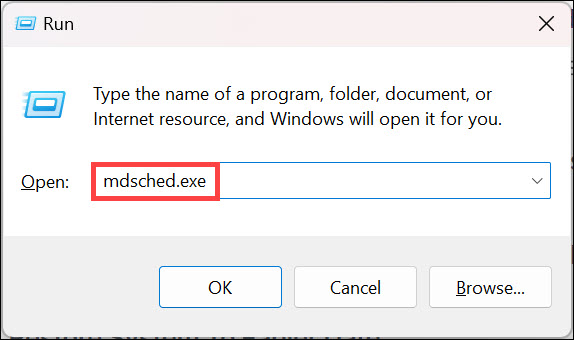 1.Nyomja meg a gombotWindows + R'A futás párbeszédpanel megnyitásához és gépeléséhezmdsched.exeA dobozban.