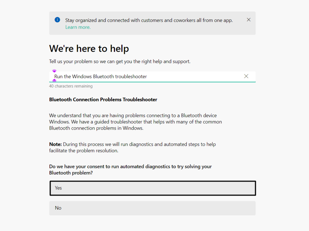 4.AKérjen segítségetablak, válasszonIgenmajd kövesse a képernyőn megjelenő lépéseket tapasztalatainak megfelelően.