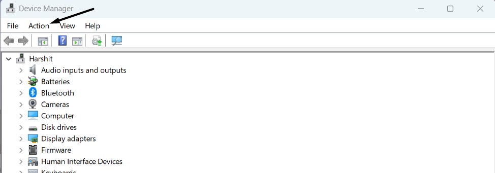 4.Miután eltávolította az adaptert a számítógépről, válassza a lehetőségetAkcióa legördülő menü megjelenítéséhez.