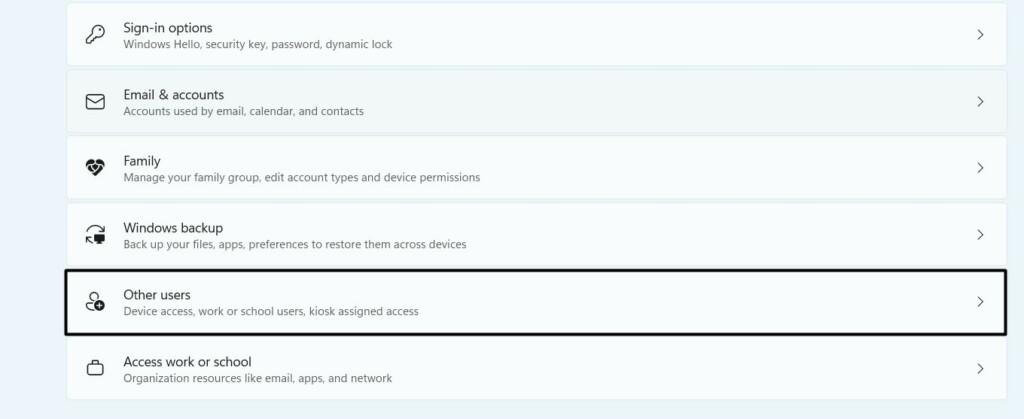 2.AFiókokablakban válassza ki aMás felhasználókopció aFiókbeállításokszakasz.