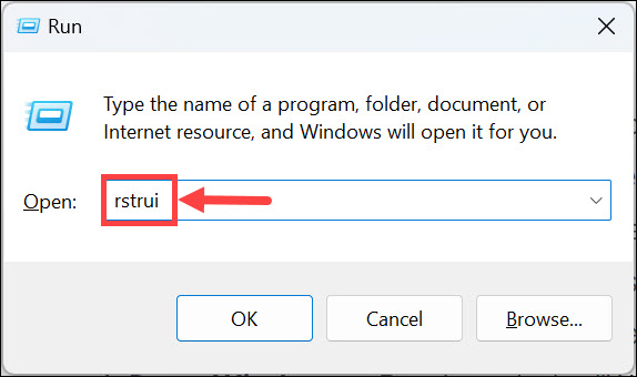 2.Írja be ezt a parancsot a „Rendszer -visszaállítás” ablak megnyitásához:görgetni