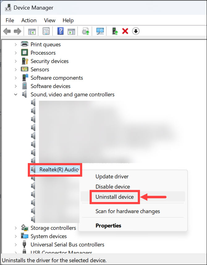 Ha az audio illesztőprogramok frissítése nem segít, akkor előfordulhat, hogy újra be kell telepítenie őket. Ezt megteheti, ha követi ezeket a lépéseket: