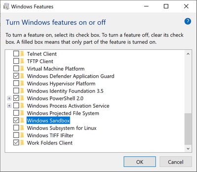 Beállítások > Alkalmazások > Választható szolgáltatások > Szolgáltatások megtekintése > További Windows-szolgáltatások > Jelölje be a Windows Sandbox bejelölését