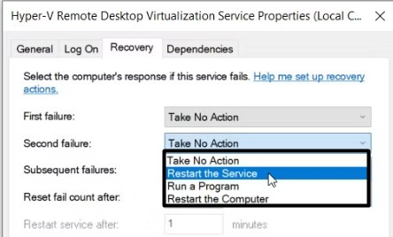 6.Állítsa be aMásodik kudarclegördülő menübőlIndítsa újra a szolgáltatástés kattintson aAlkalmaznigombot a változtatások mentéséhez.