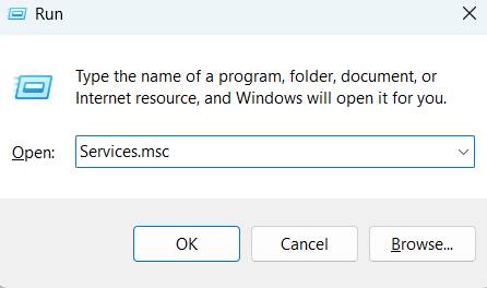 1.Nyomja meg aWindows + Rgombok egyidejű nyitásáhozFutés írja beServices.mscbenne.