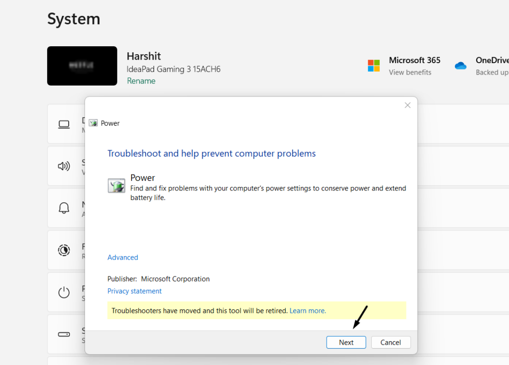 4.Végül hagyja, hogy az energiaellátási hibaelhárító megkeresse és kijavítsa a Windows 11 rendszerű számítógépével kapcsolatos energiaproblémákat.