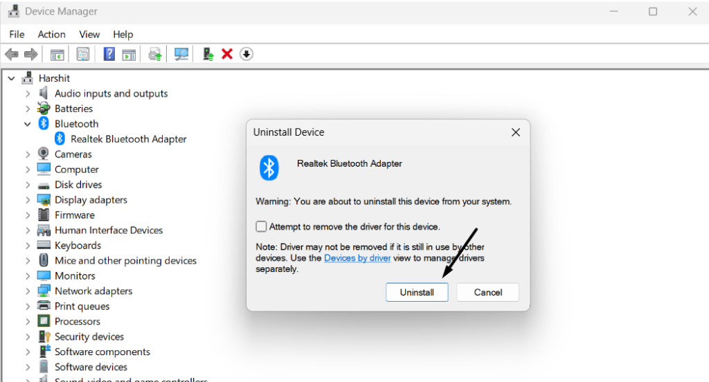 3.Kattintson aEltávolításgombot az új promptban, hogy végül eltávolítsa a kiválasztott illesztőprogramot a számítógépről.