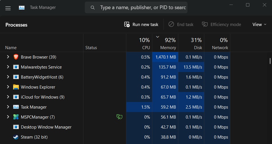 2.AFeladatkezelősegédprogramban kattintson a jobb gombbal bármelyik futó alkalmazásra vagy feladatra aFolyamatokszakasz.